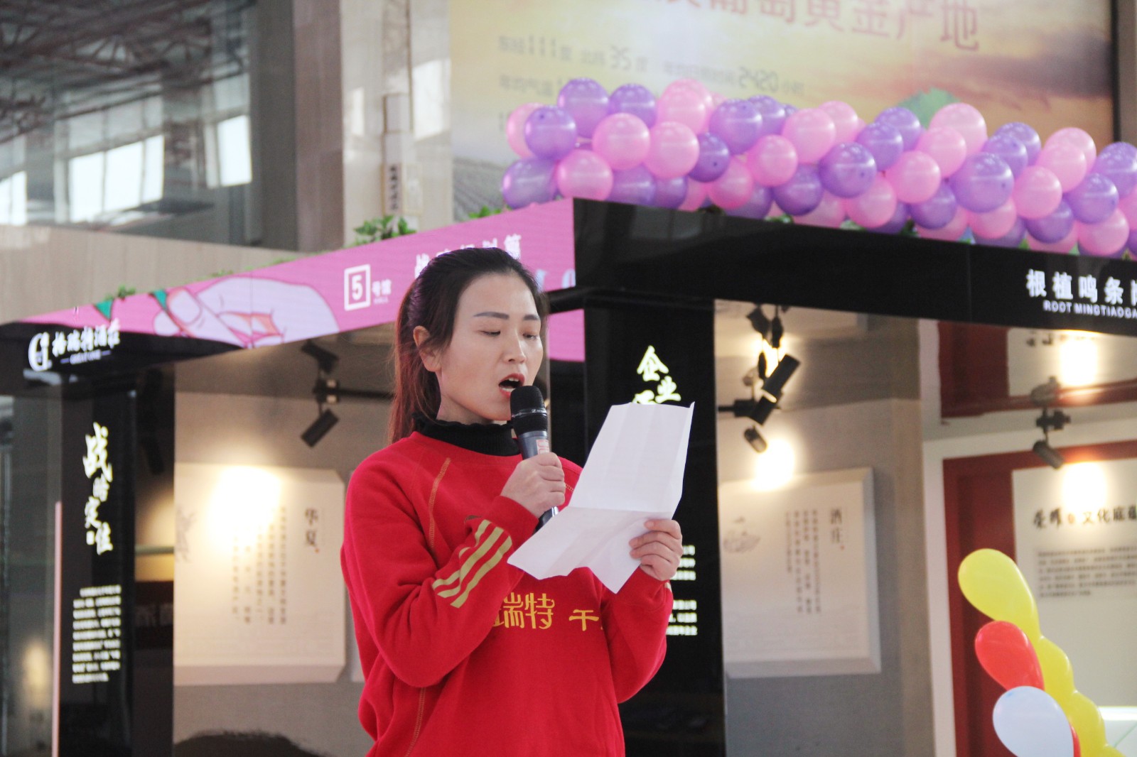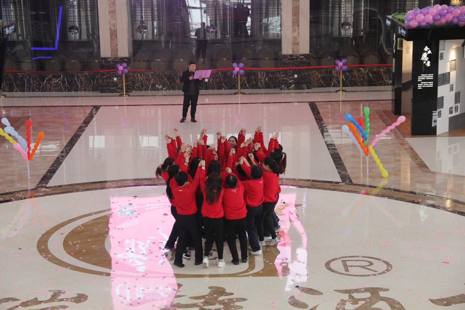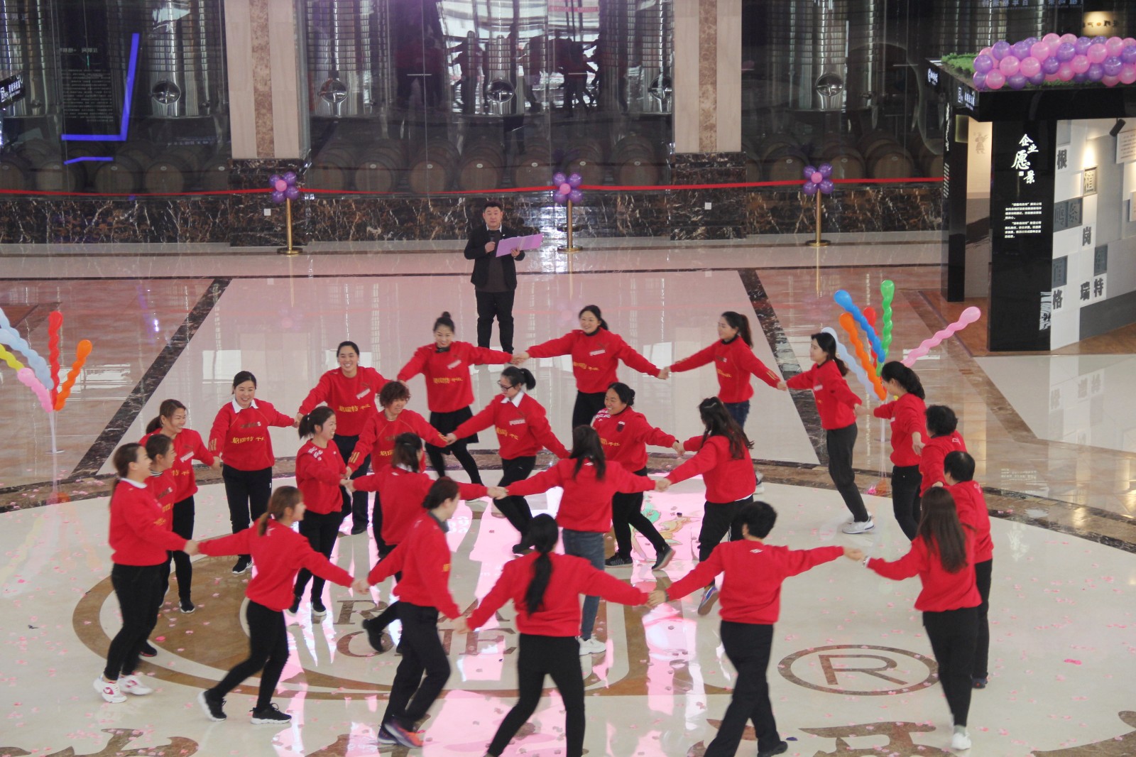 在3月8日上午9:00整,酒莊所有女同志穿著統(tǒng)一服裝齊聚格瑞特酒莊文化大廳,隨著開(kāi)場(chǎng)音樂(lè)的響起,“最美女神節(jié)”活動(dòng)正式拉開(kāi)了帷幕。主持人宣布格瑞特酒莊最美女神節(jié)活動(dòng)正式開(kāi)始,此次活動(dòng)總共有七項(xiàng)議程。