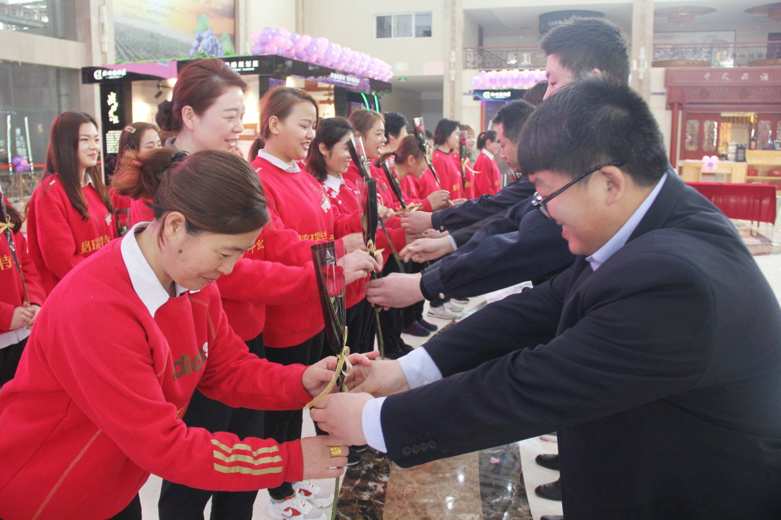玫瑰綻放之后,格瑞特酒莊全體男同事為女神們獻(xiàn)出了最美鮮花,祝福她們節(jié)日快樂(lè),在這一刻員工彼此之間的感情得到了進(jìn)一步的升華。
