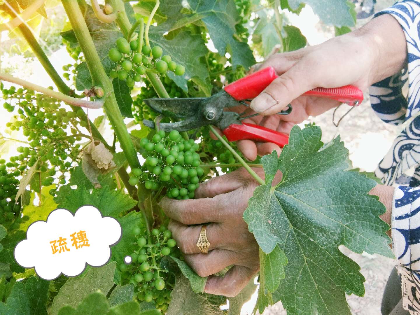 疏穗是將葡萄穗稠密的區域中的果穗適當疏除,保證每個果穗通風透氣,避免稠密處果穗腐爛變質。綠枝再次上架有利于葡萄通風透光良好地生長。噴波爾多液是將對葡萄有威脅的一些病蟲害,控制在一定的范圍內。(波爾多液是一種保護性的殺菌劑,具有殺菌譜廣、持效期長、病菌不會產生抗性、對人和畜低毒等特點,是應用歷史最長的一種殺菌劑,請大家放心。)
