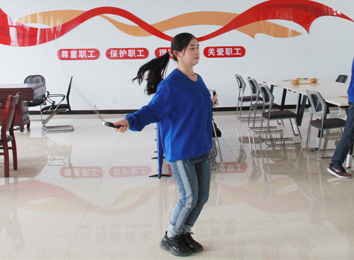 個人1分鐘跳繩賽,每位參賽選手都積極準備、用心參賽,比賽一開始,個個精神抖擻,身輕如燕。每個動作都是比賽場上靚麗的風景線,充分展示個人風采,賽出了友誼,賽出了水平。比賽在大家的歡呼聲、喝彩聲中有序進行,現場氣氛十分熱烈。