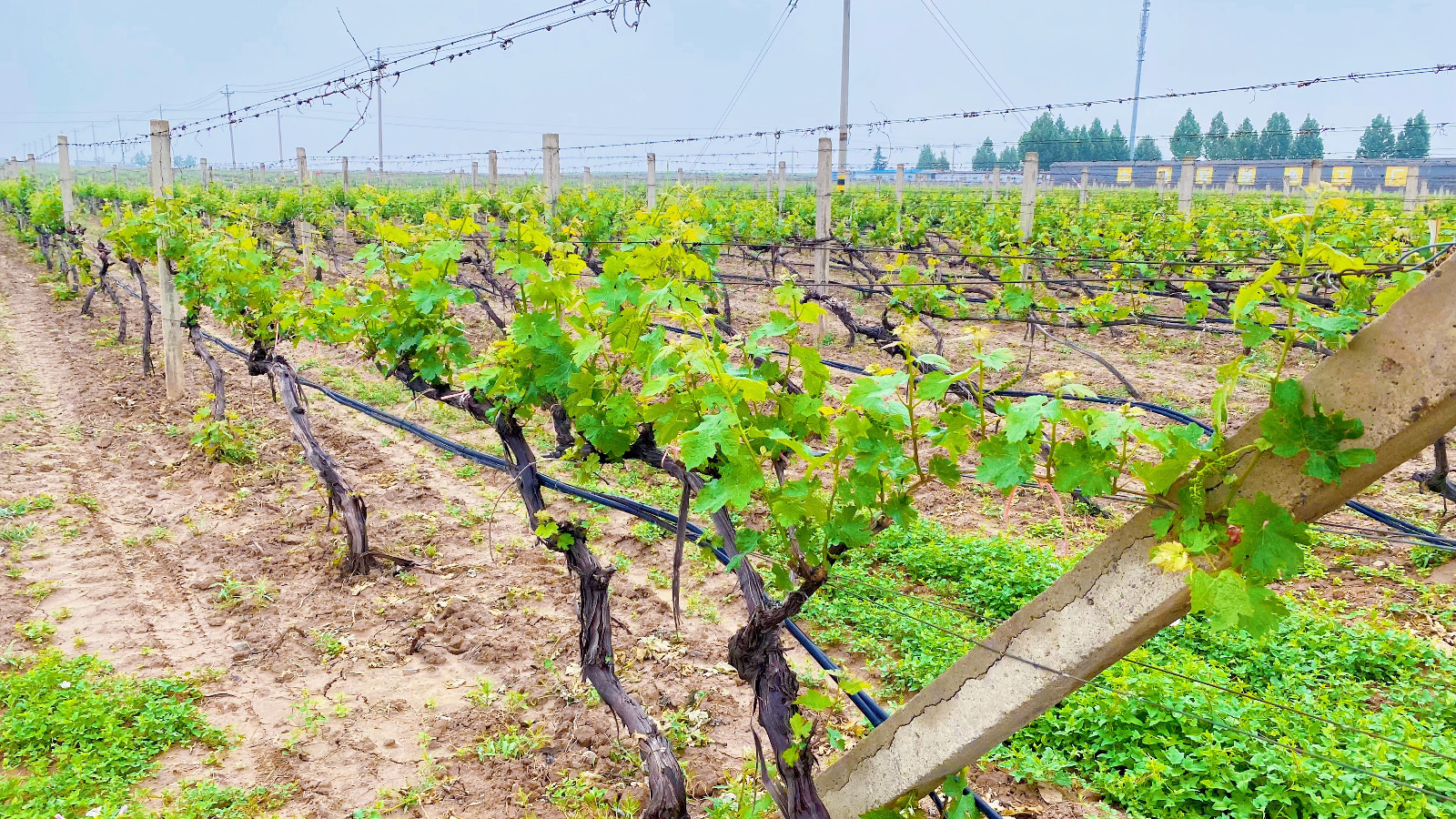五月初,立夏到。氣溫升高,農(nóng)作物進(jìn)入蓬勃生長(zhǎng)的階段。此時(shí)的格瑞特葡萄種植基地,釀酒葡萄的新梢快速生長(zhǎng),仿佛被追趕著似的,不停向上。工人們也正在進(jìn)行綠枝剝芽上架,將四處散開(kāi)的枝葉收攏,攏入雙絲內(nèi),讓莊園更加美觀整齊。